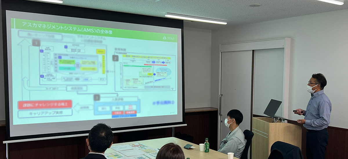 上記を含む、社内取り組みの成果を、弊社のマネジメントシステムである「アスカマネジメントシステム(通称:AMS)」でどのように人事評価体制を敷いているか。
