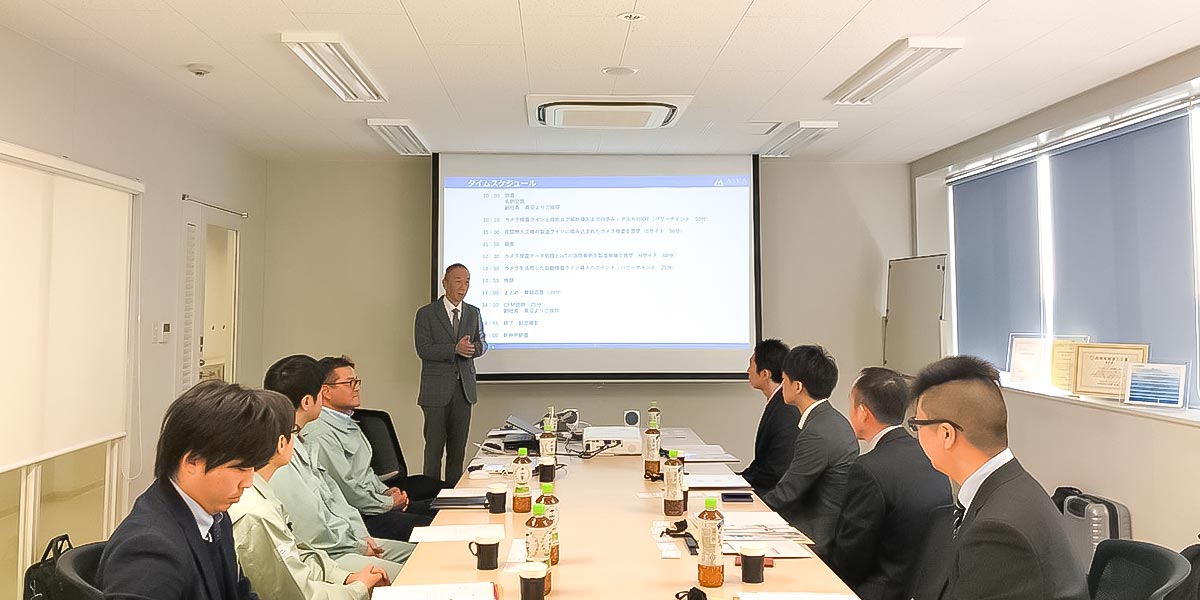 製造現場の昼礼にご参加いただき、実際に製造現場でどのようにデータを運用・管理しているのかを実際に体験していただいております。