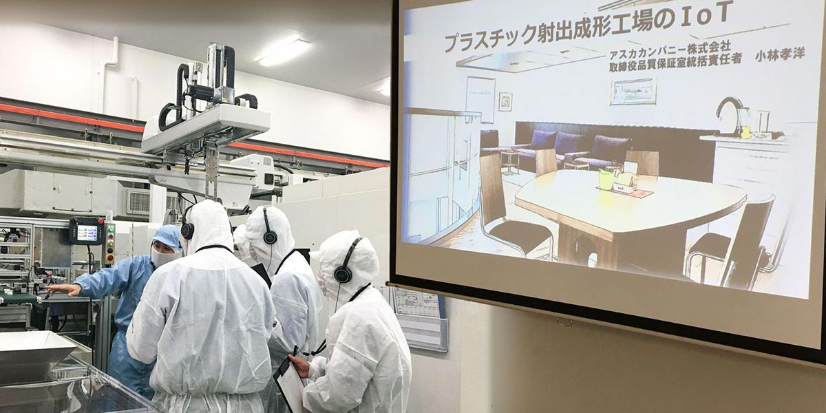 続いて、実際に工場内に入場いただき、現場でIoTの活用事例をご紹介します。