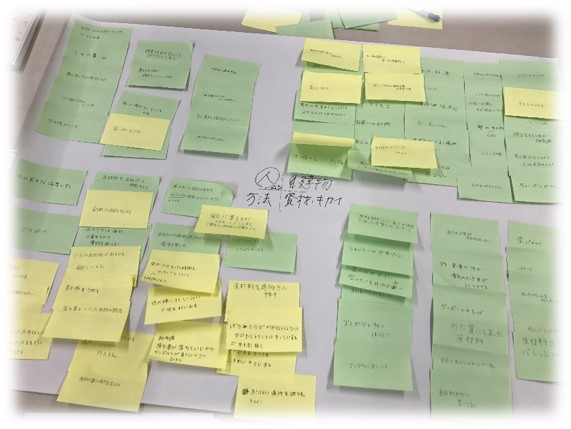 QCサークル活動の気分を味わっていただくためにKJ法や親和図なんかも使っています。すごいです!