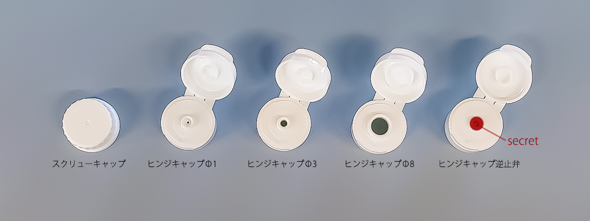 - キャップ部:ヒンジキャップ/スクリューキャップ選択可能
