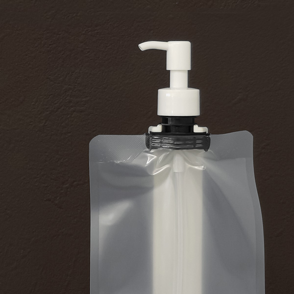 特に『エアレスポンプ』は空気を戻さないため内容物が減っていくと共にパウチがペタンと薄くなってしまいます。