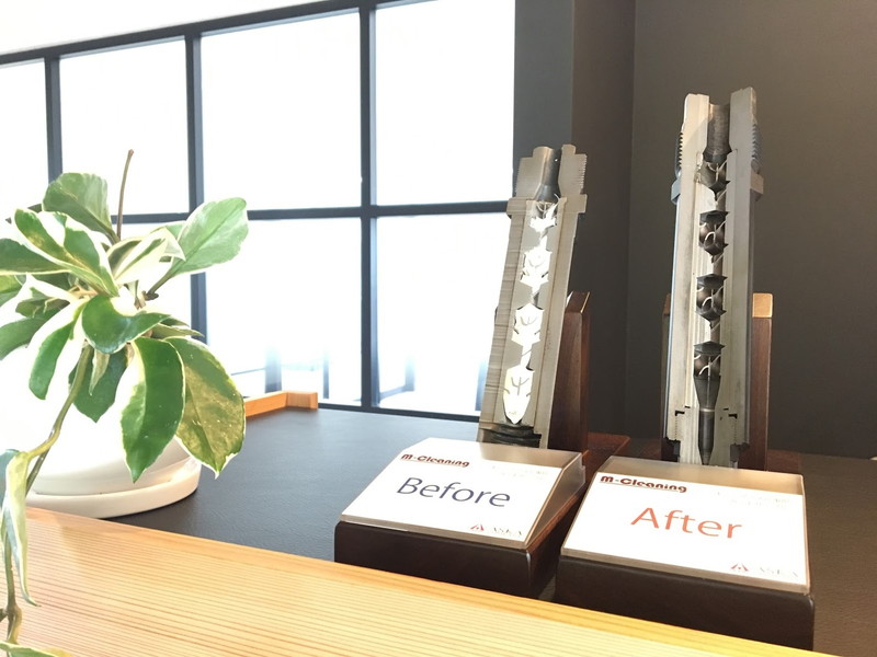 ホットランナー金型の流路のメンテナンスや、射出成形機に使用するミキシングノズルを炭化異物を取り除くための、メンテナンスを2004年から受託を開始しています。