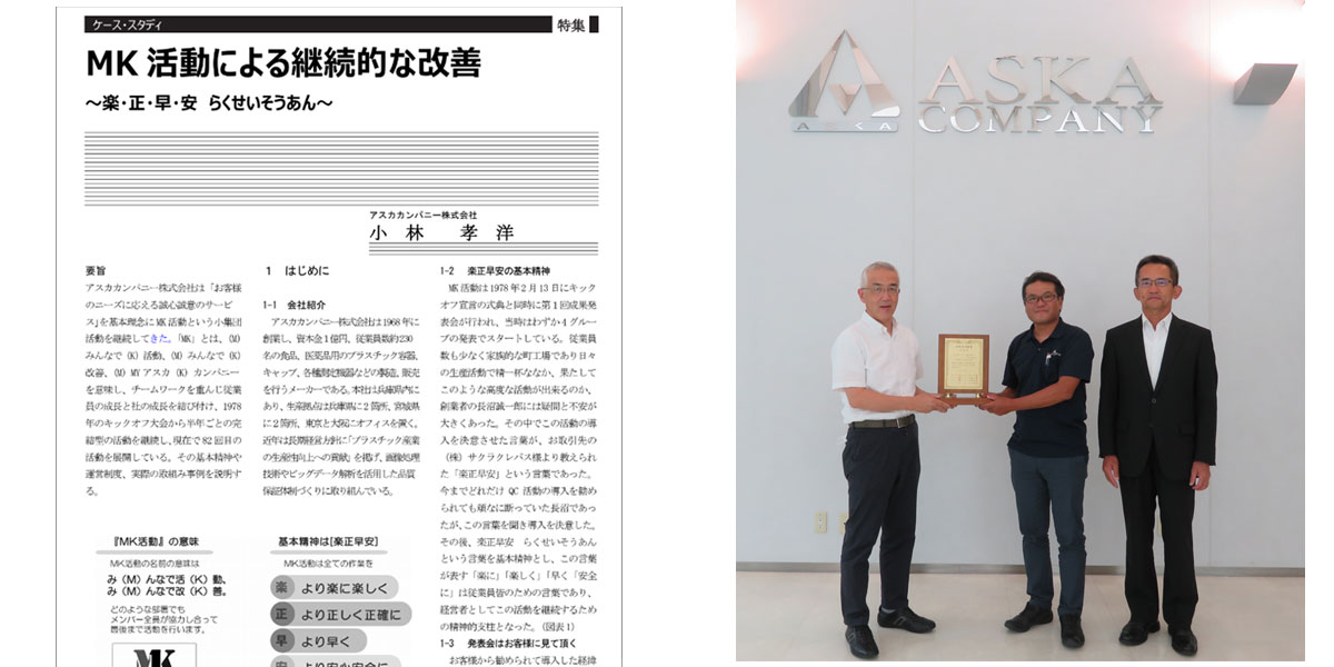 また、IoTと人材育成との関係性もクローズアップされつつあり、その中でアスカカンパニーにお声がかかり、楽・正・早・安を基本理念としたMK活動を本誌にご紹介させて頂きました。