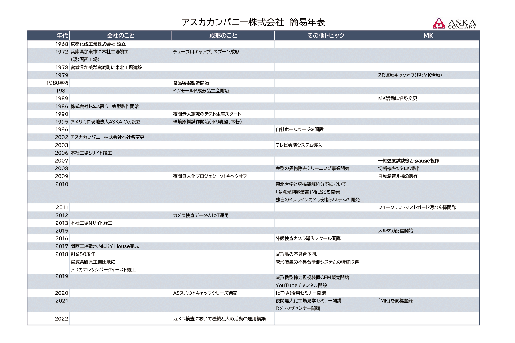 社名 アスカカンパニー株式会社 設立 1968年(昭和43年)5月 代表者 長沼 誠 なが ...