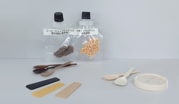 1.廃棄を活用した製品(左)と生分解プラスチック(右)