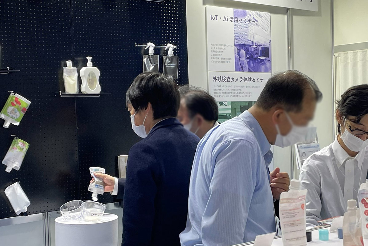 アスカカンパニーではスパウト付パウチ製品を中心に展示しており