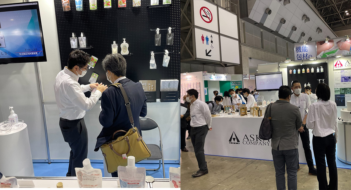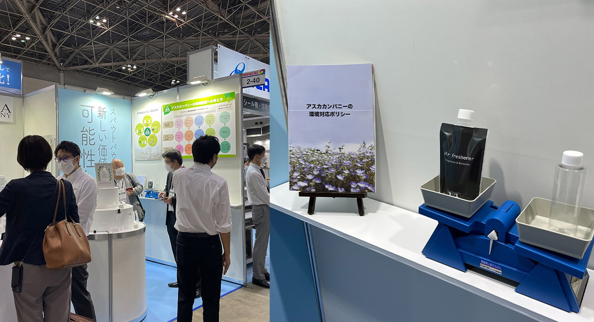 アスカカンパニーブースでは、スパウト付パウチ製品を中心に展示させていただき、