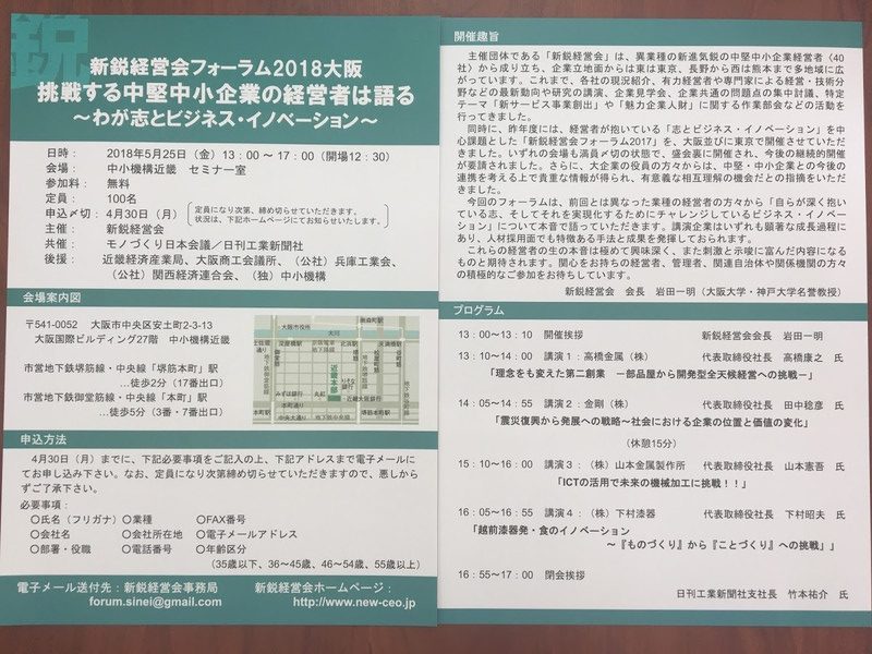 【会 場】中小機構 近畿 セミナー室【参加料】無料【定 員】100名【申込〆切】4月30日(月)