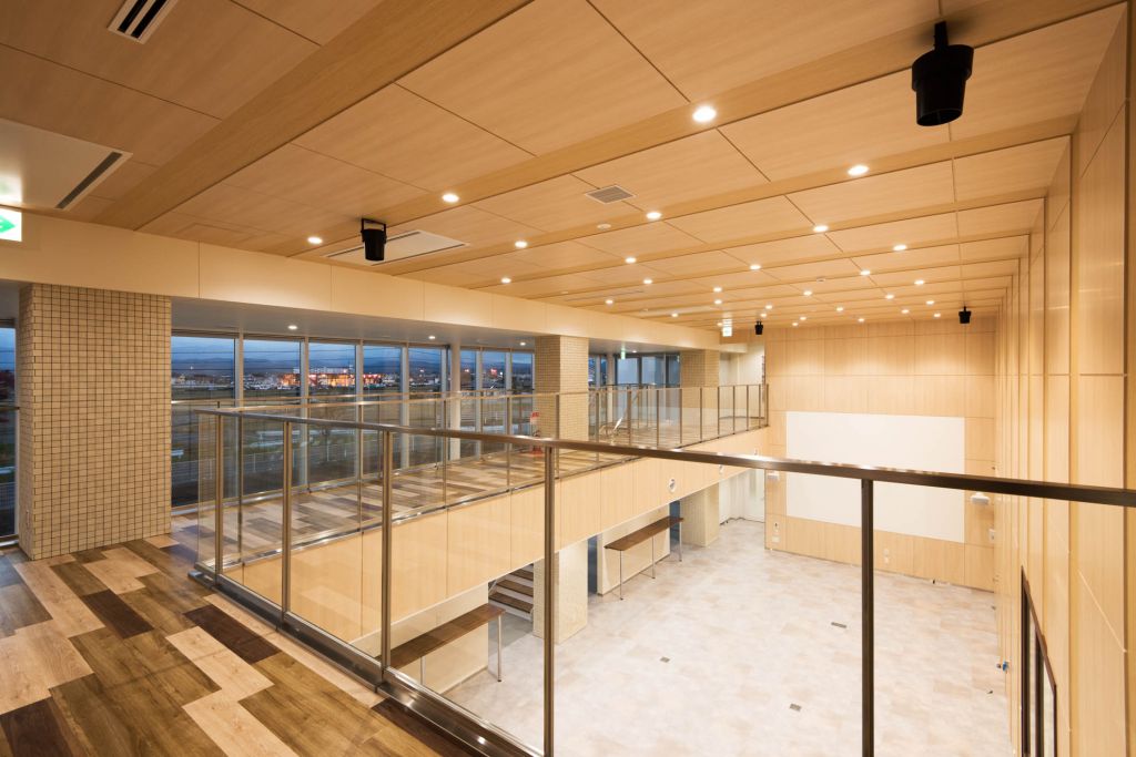 カメラ講習や成形技能講習、異業種交流会等も実施できるよう、大画面のスクリーンが設置された大型の空間を造りました。