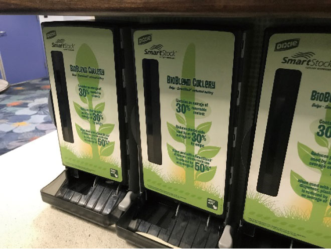 上面写着减排等字样的设计,从中可以理解到在环境保护等方面很用心。