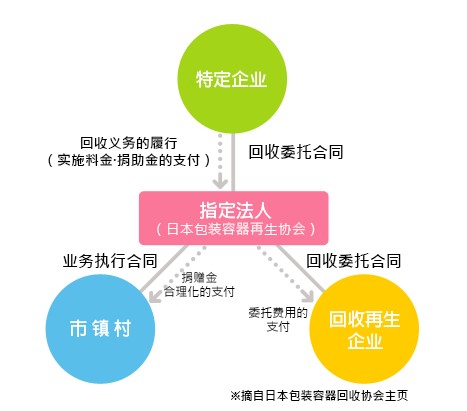 为了履行指定法人 ((集团) 日本包装容器再生协会) 的回收义务, 接受特定企业的委托进行回收再生, 特定企业将向该协会支付委托费用, 被视为履行了回收义务。