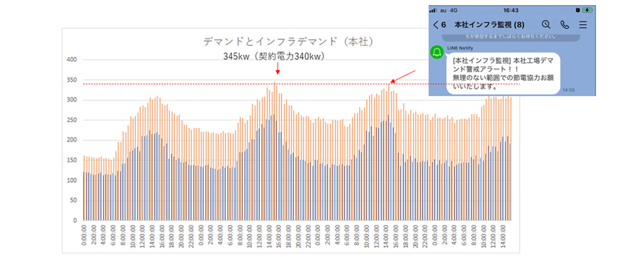 By notifying relevant parties in the event of an abnormality, we suppressed the demand value and reduced the electricity costs.