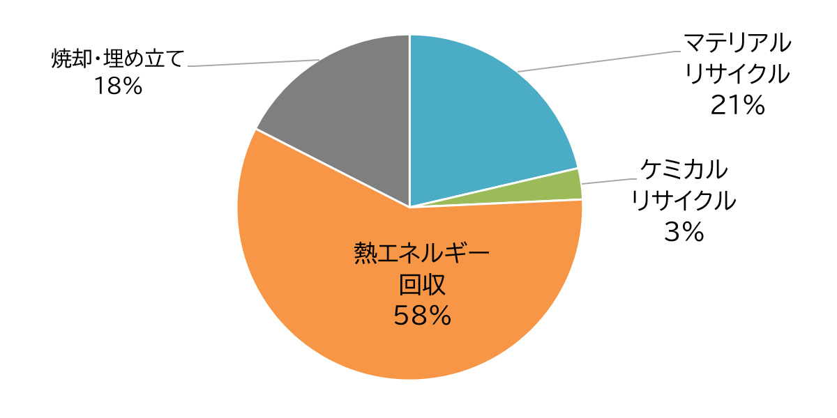 つまり、プラスチックとしてリサイクルされているのは1/4に満たないということになります。