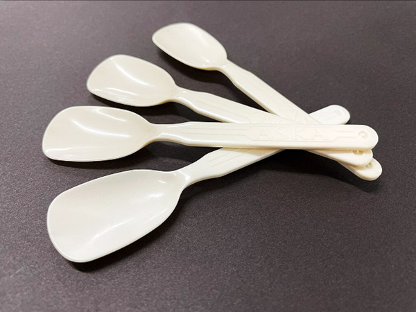 PLAは土中の微生物によって分解され、やがては水と、カーボンニュートラルとして二酸化炭素に還る特徴があり、カトラリーや農業用資材として用いられています。