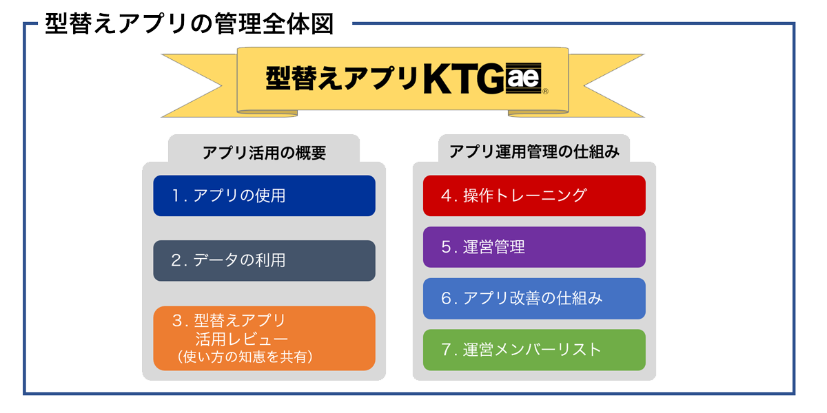 「型替えアプリ活用の概要」と「型替えアプリ運用管理の仕組み」の2つに層別して運用しています。