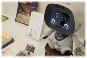 上の小型ロボットは接客代行ロボット。他に総務課や採用課への問い合わせに対し、AIが自動対応するような取り組みもありました。