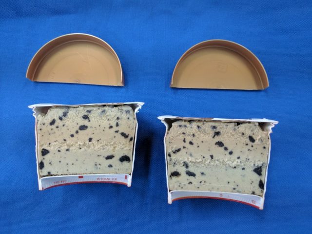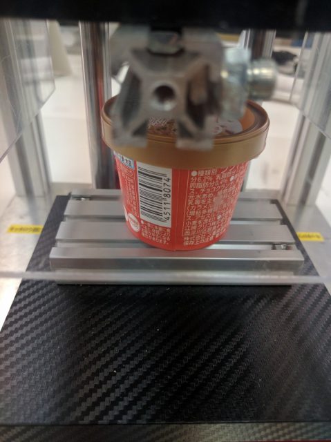 アイスカップやフタなどもプラスチックである場合があり、今回はそのつながりもあってアイスクリームをカットするという依頼を頂きました。