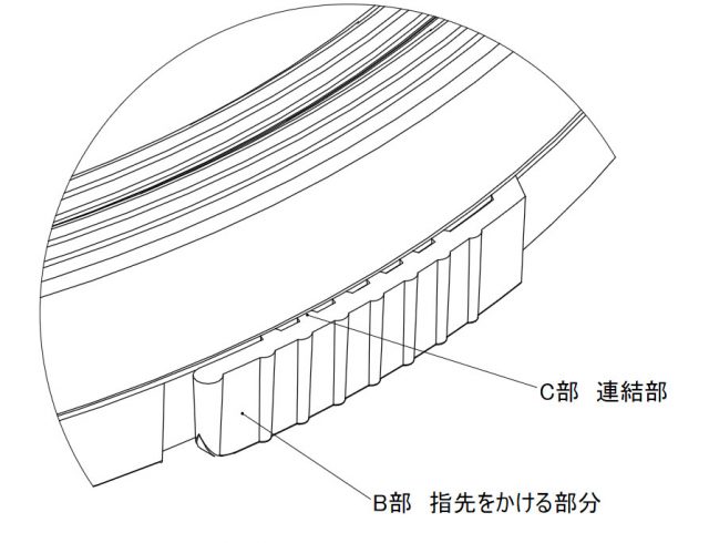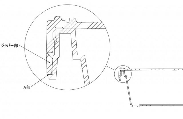 全周ジッパーを取り外した段階で、蓋はある程度回数を繰り返し使用されますのでC部は指に当たっても優しい感触になるよう、素材を含めて鋭くならないことが求められます。