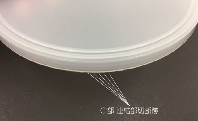 B部の設計は長さ約1㎜程度の幅で点で連結した連結部Cを6カ所設けています。