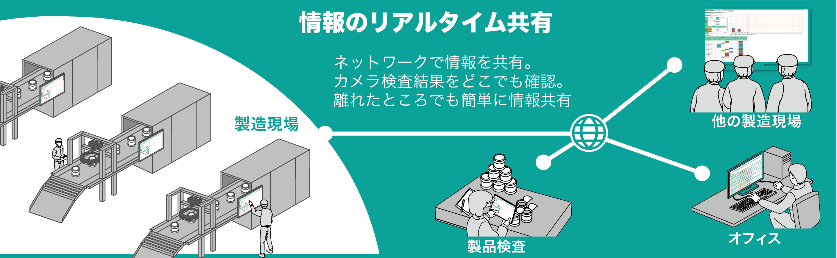 MyCiSは簡単に言えば、「カメラ検査結果のデータを用いて、生産状況を見える化・共有して品質と生産性の向上を目指す」ソフトウェアです。