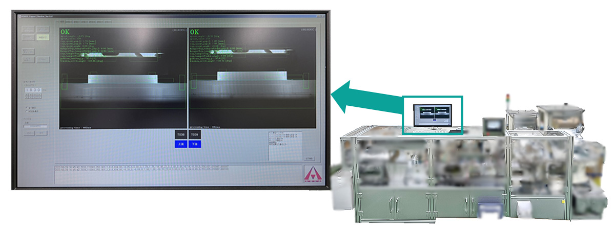 左:セット機のカメラ検査画面 / 右:自動組立機(通称:セット機)