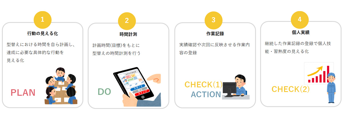 金型交換におけるタイムマネジメントアプリシリーズ