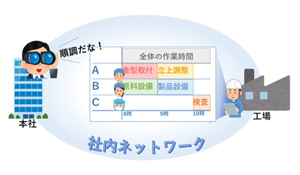 兵庫県と宮城県で計5拠点で生産していますが、離れた土地からも各工場の動きを見ることができます。