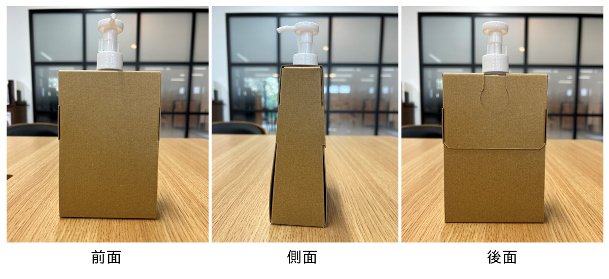一方で、今回製作したスタンドは紙で作られているので、従来のスタンドに較べ、容器トータルのプラス