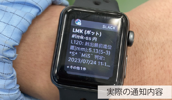ある一定の条件を越えた時に作業者の装着しているApple watch(他のデバイスにも同様に)に情報が届き、問題の内容もその場で確認出来ます。