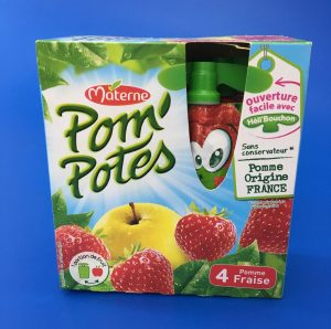 さて中身ですが、リンゴ(Pomme)72.3%とイチゴ(Fraise)21.6%をすりつぶしたペーストですが、あまり日本ではこういった触感の果物食はないのかなーと思います。色は赤色ではなく、着色感がないベージュです。なんとも新鮮な感じで、本物感が漂いとても美味しいです。