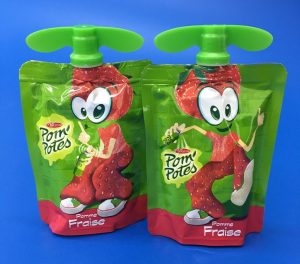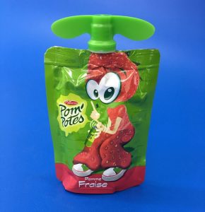パウチ容器のキャップが子供でもひねりやすい大きなタブになっていますが、どちらかというとキャラクターのデザイン性が高く、機能よりもキャラクターのユニークさが前面に出ています。たまたまキャップのデザインが開けやすかった!という印象を与えるのは上手だなと感じてしまいます。イラストが単一でないところもハートをキャッチしてくれます。