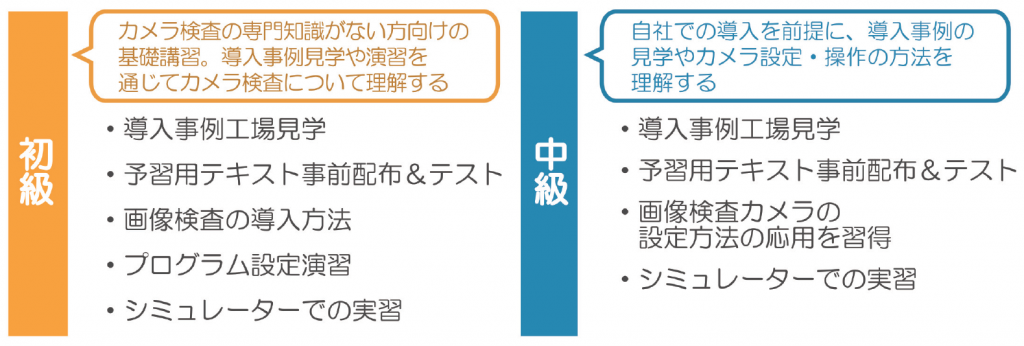 どちらのコースも実際のカメラ設定や製品の合否判定の演習などにより、実践的に理解することができます。