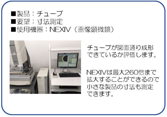 チューブが図面通りできているか判断するための寸法測定の依頼があり、NEXIVを使用して測定しました。