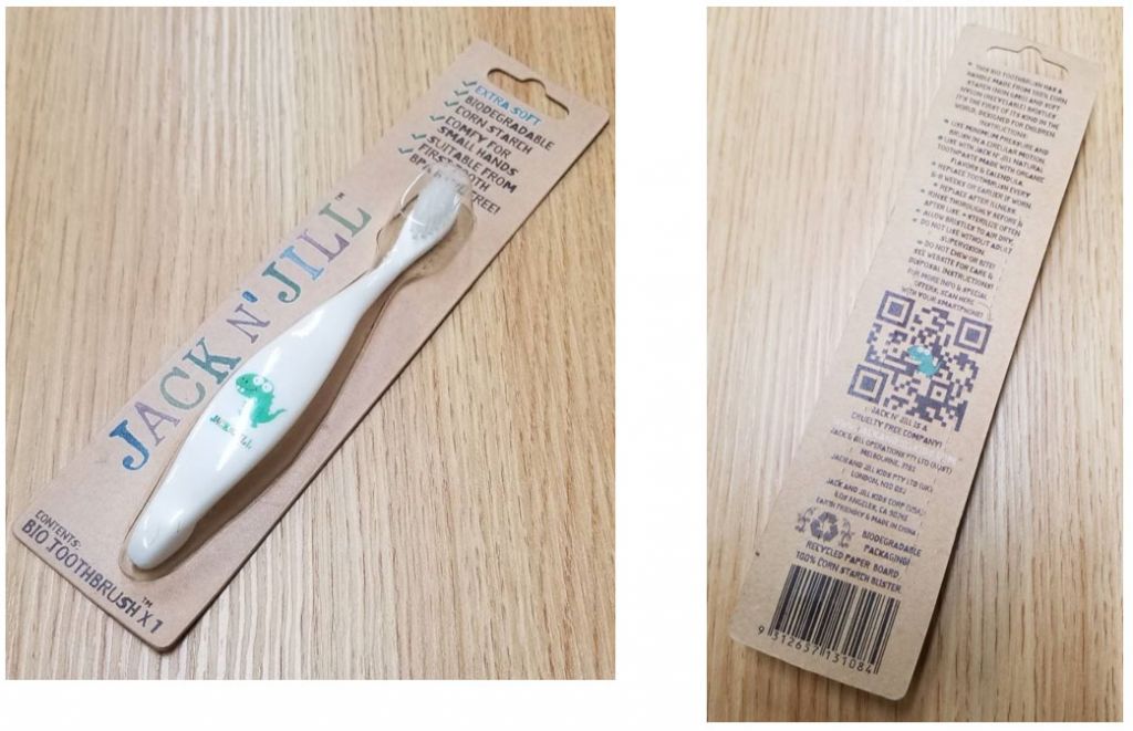 また、生分解性のコーンスターチで作られた子ども用の歯ブラシなども販売されていました。