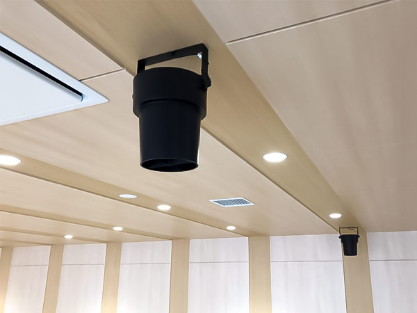 天井の高いカーディーラー、公共施設、一般施設などで多く採用されておりますが、弊社のナレッジパーク イーストの吹き抜けにもエコシルフィを設置しており、1Fから2F吹き抜けの温度差低減に役立っております。