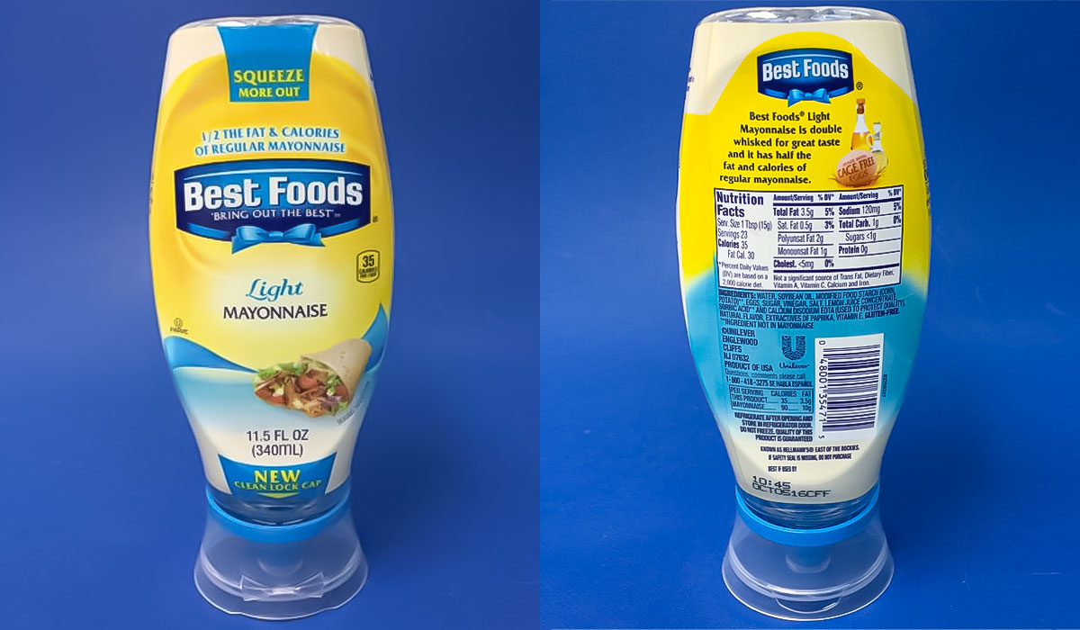 下の写真の商品はアメリカで売られているBest Foods のマヨネーズ(ライト)340mlです。