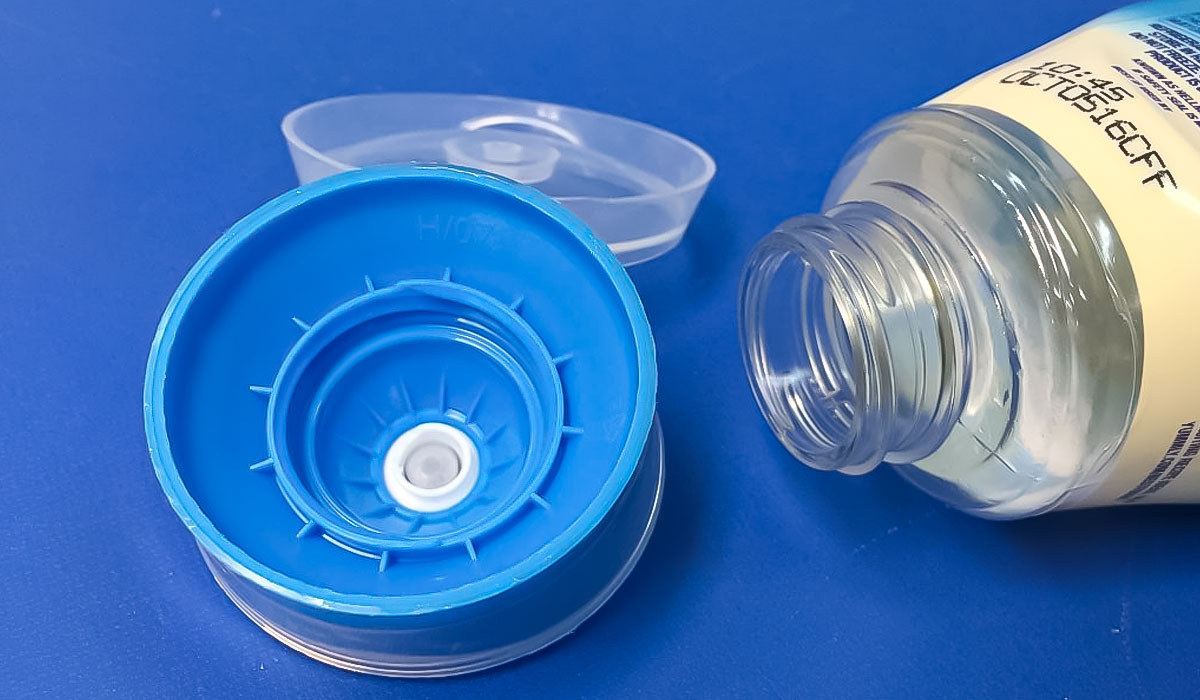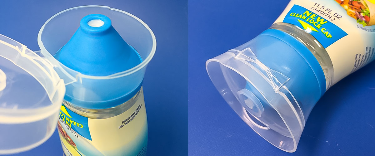 キャップが下になって、スタンディング容器になっています。大きなヒンジキャップがついています。