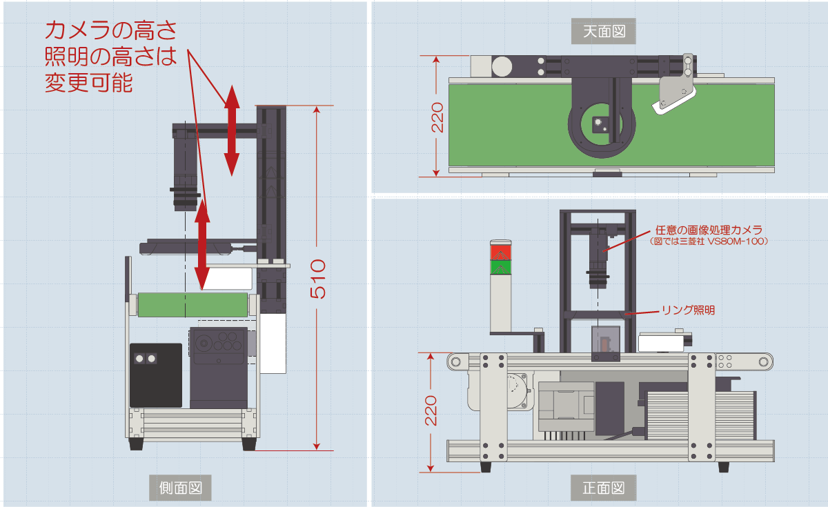 本製品は画像検査を行うために必要なものをコンパクトにまとめた簡易検査機です。