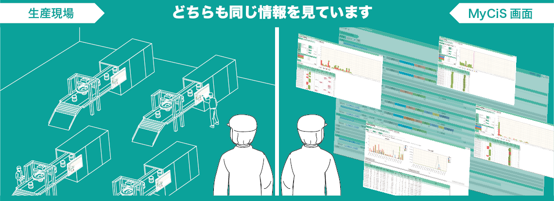 生産現場のオペ―レータが知っている生産状況も、MyCiSでは一つのWeb画面で簡単に把握。