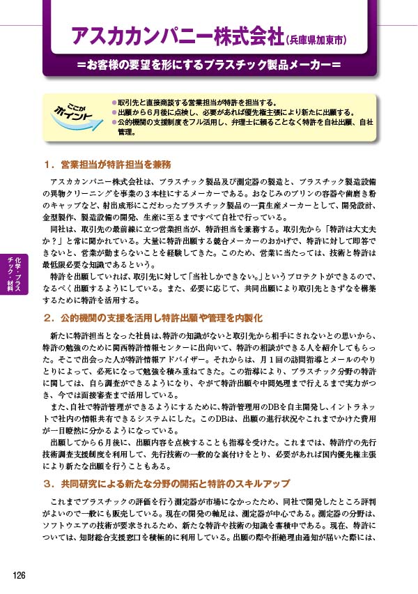 弊社の知的財産に関わる取り組みを評価いただき、経済産業省・特許庁が発行の「知的財産権活用企業事例集2011年・2014年版」に事例企業として紹介いただきました。