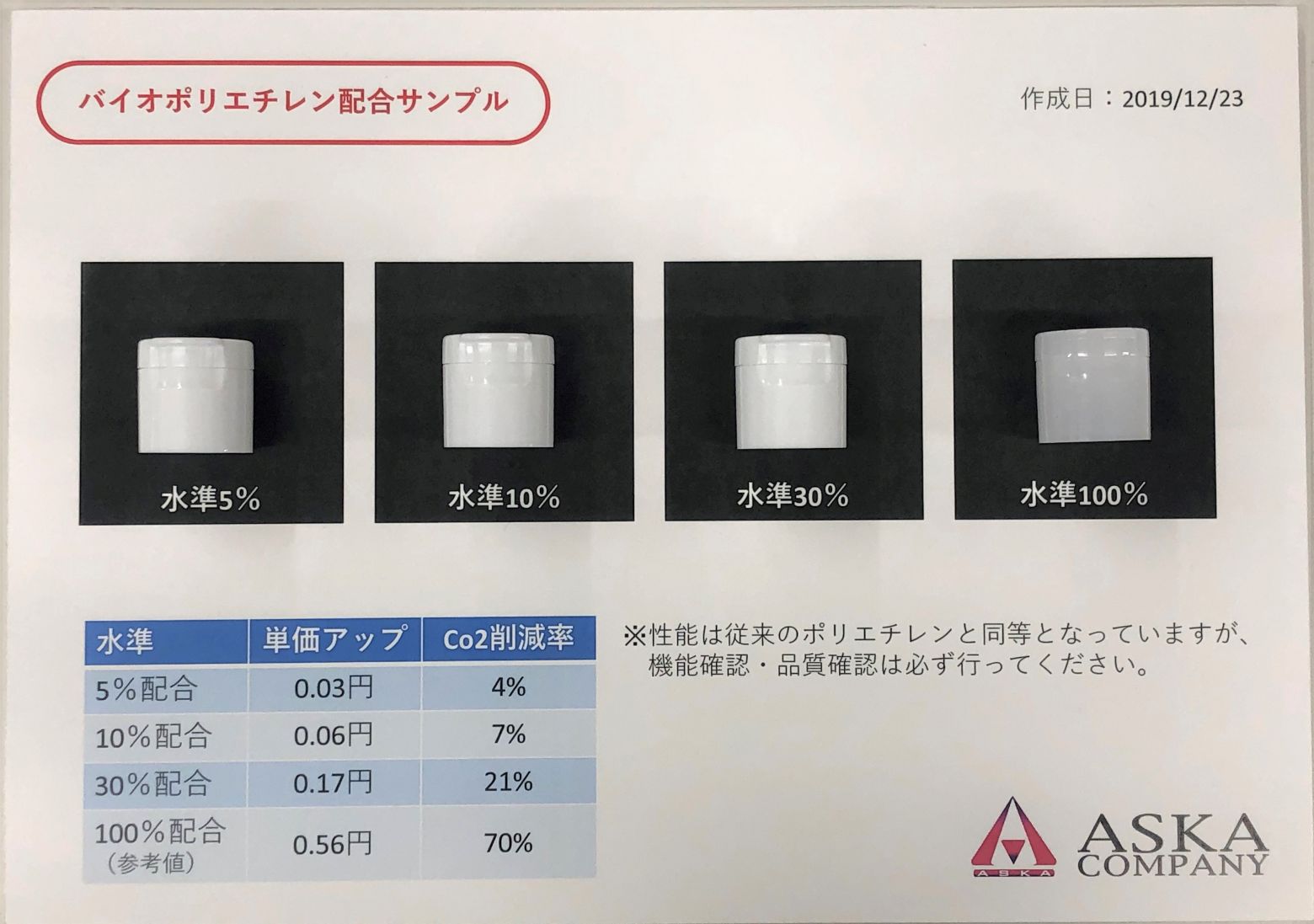 これまでアスカカンパニーでは、プラスチック使用量削減の取り組みとして、製品の薄肉化を図ることで、環境対応に取組んできました。