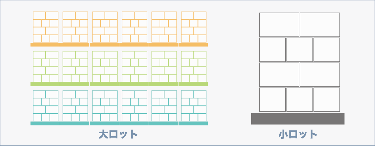大ロットの生産設備で小ロット品を生産すると取り回しが悪くロスも出てきてしまいます。