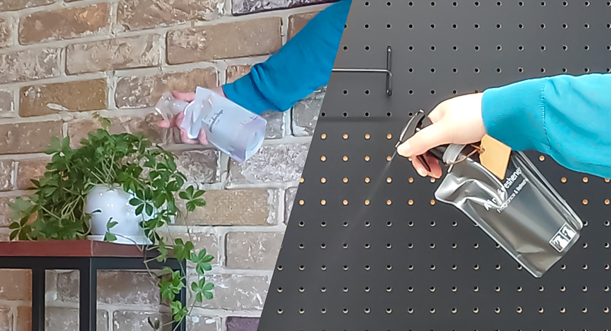 実際の利用をイメージできるように、観葉植物にスプレーしたり、ハンドソープで手を洗ったりなどしています。
