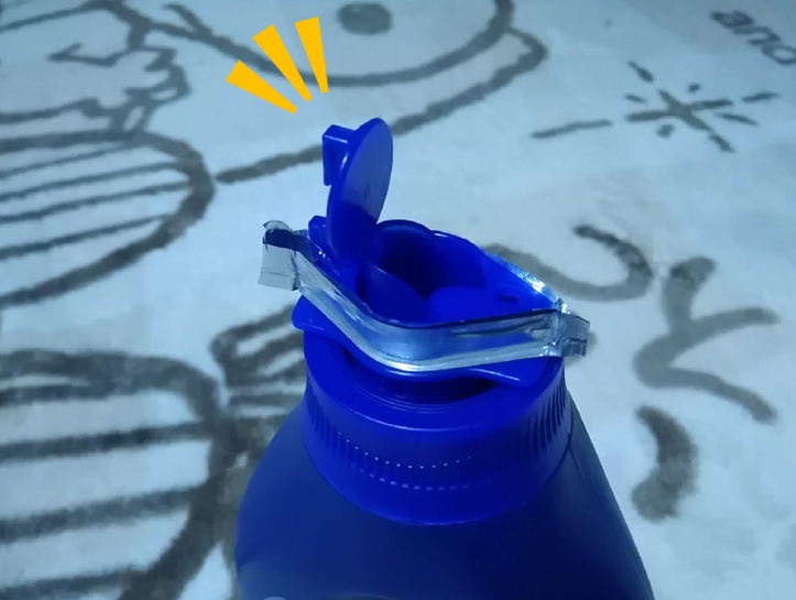 どうなっているのかこのままではわからないので、詰め替え用のスパウト部分のみを切り取ってボトルにセットしてみることにしました。