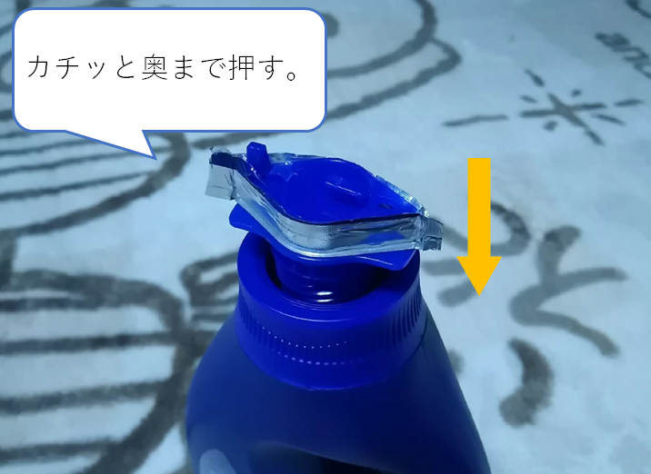 詰め替え用本体に記載されている『ボトルにフィット簡単詰め替えパック』という文字通り、どうやらボトルにカチッとフィットさせて詰め替えるようです。