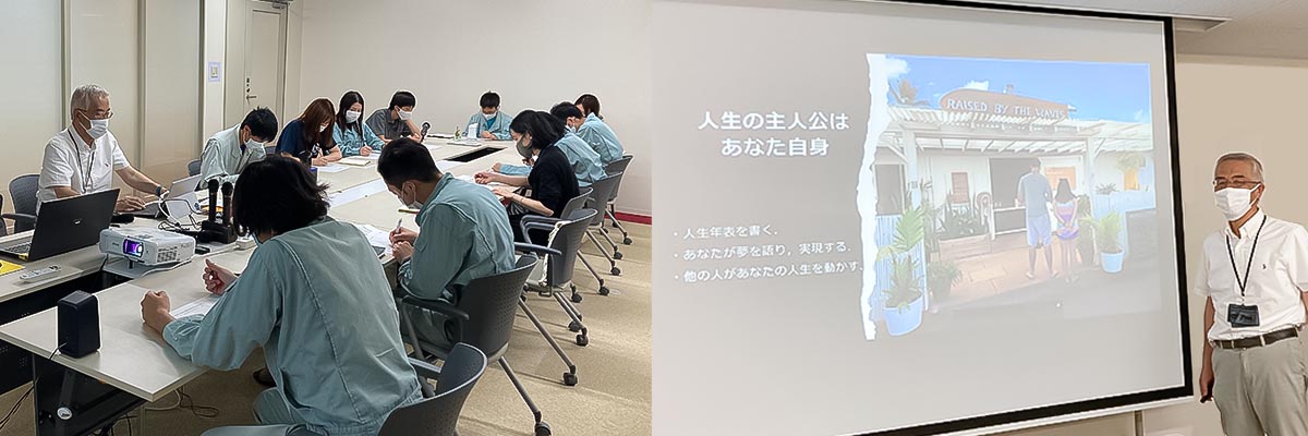 弊社のグループ会社となる株式会社アスカコネクト 林社長を講師に迎え、「これまでを振り返り、今後を考えることで仕事もプライベートも充実させよう」をテーマに全6回の研修を行っております。