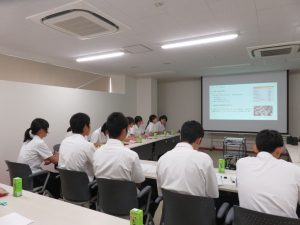 8/25(金曜日)10:45~12:00、兵庫県立社高等学校 2年生の生徒さん(13名)と先生(2名)に本社工場の工場見学にお越し頂きました。