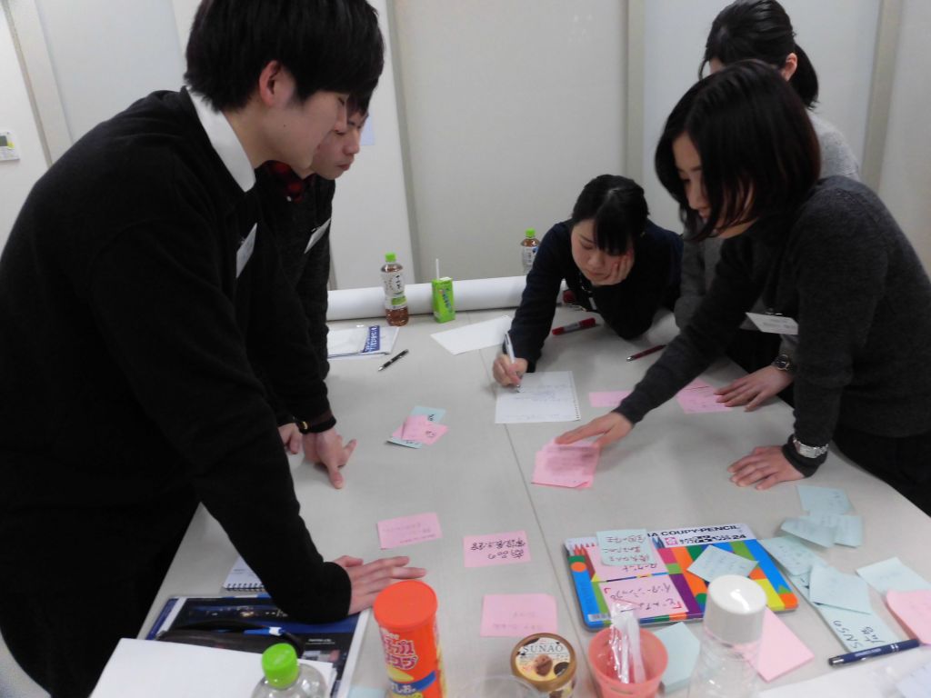 今回のグループディスカッションのテーマは「もしもあなたがアスカの採用担当だったら…」ということで、学生さんにアスカを知ってもらい、入社したいと思ってもらえる方法を自由に考えてもらいました。