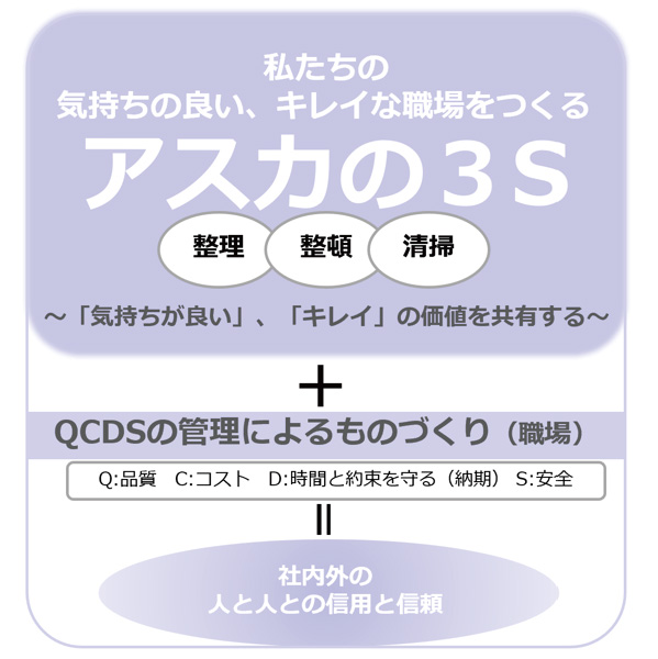 ASKA公司今后将继续致力于3S推进活动并不断进行改进,因此也会加深与大家的信用和信赖关系。